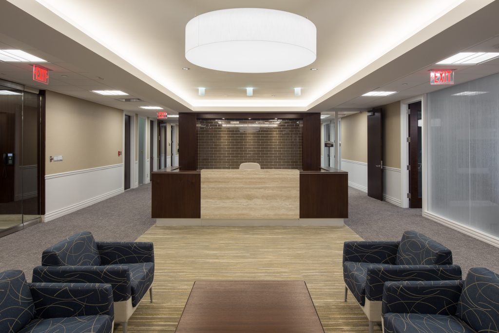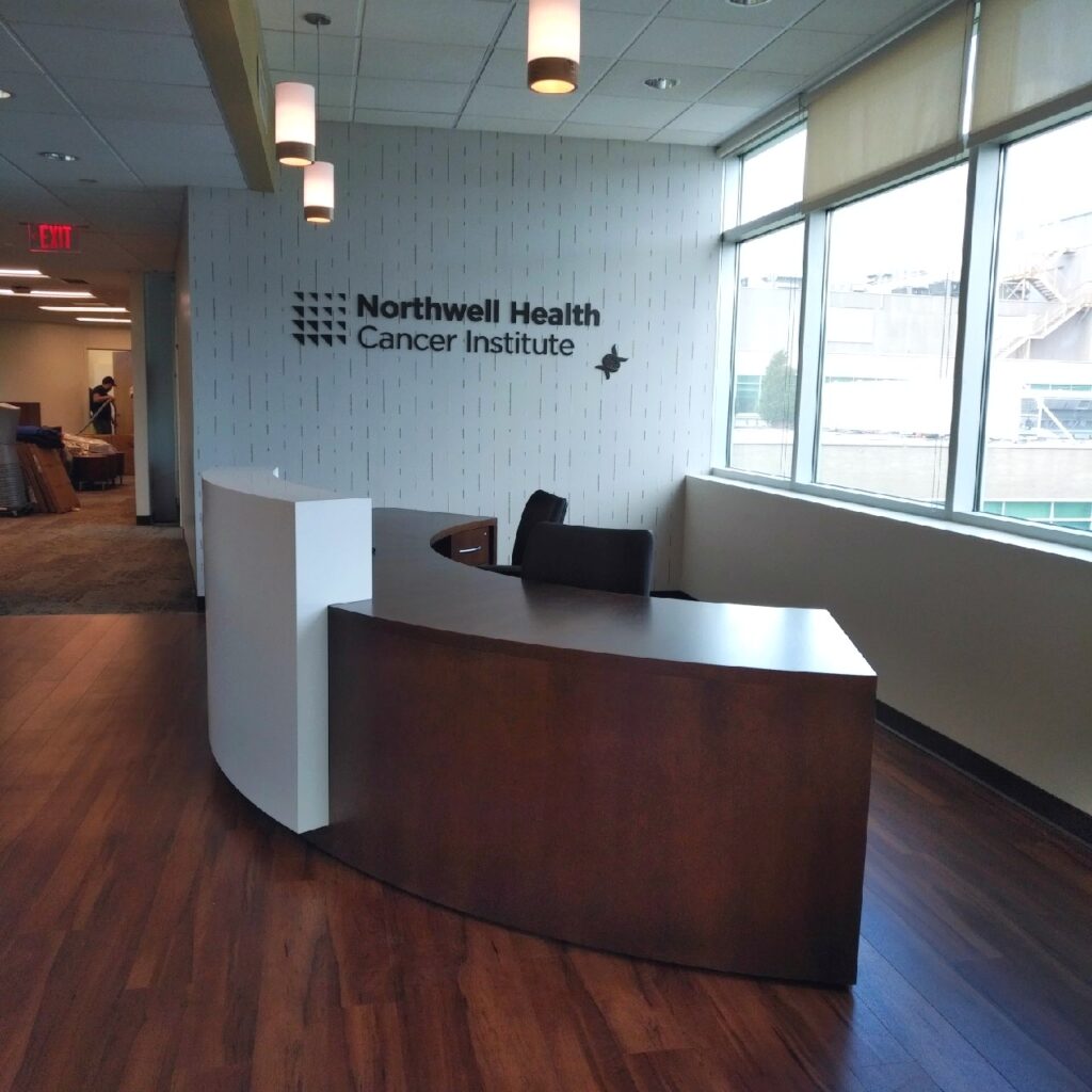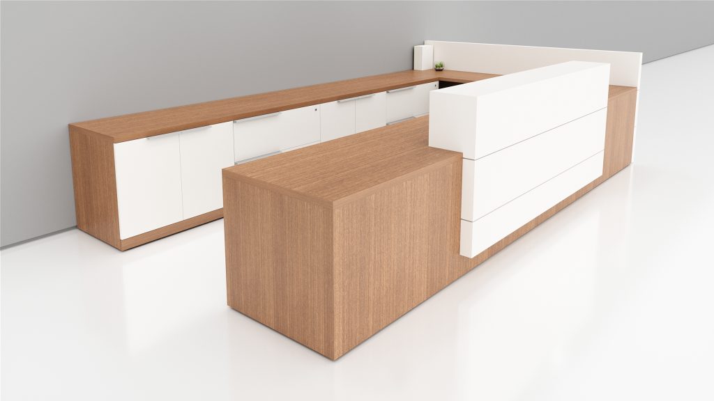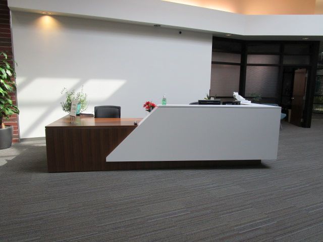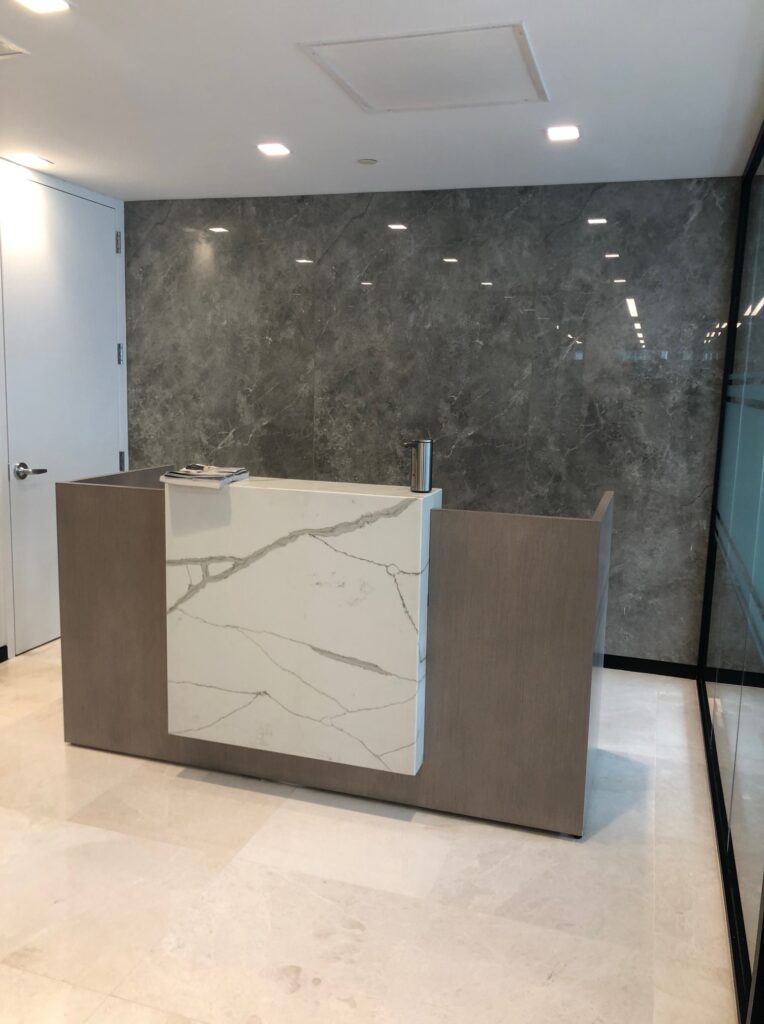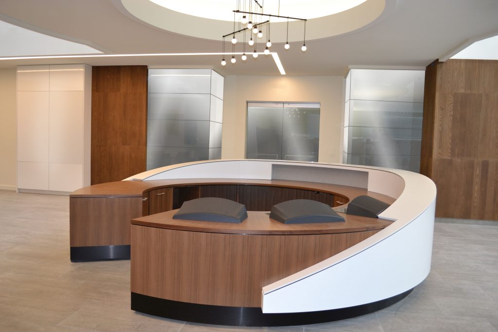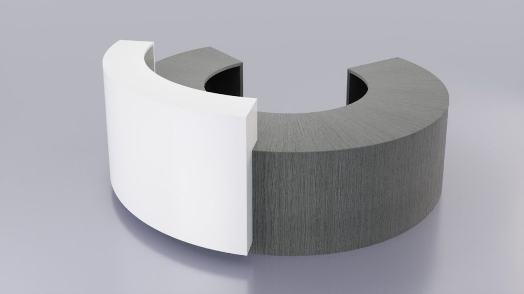 LES platform reception desk - 100"diam, Z12 ENG Dark Grey + white Corian