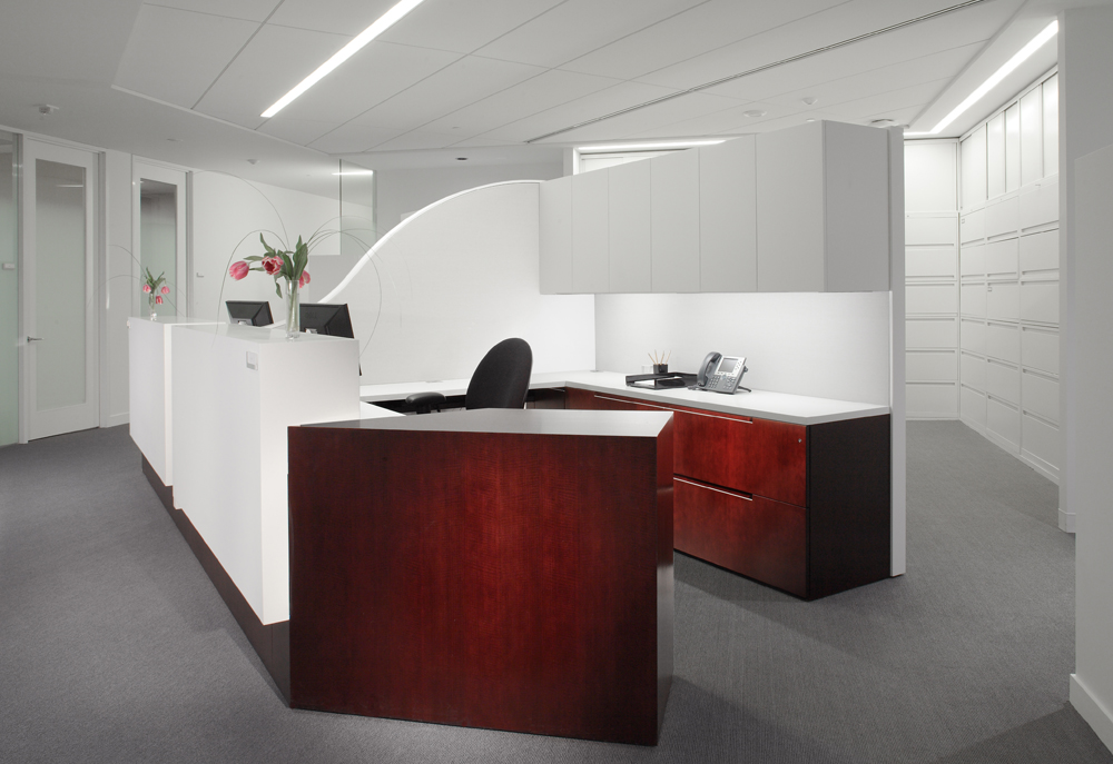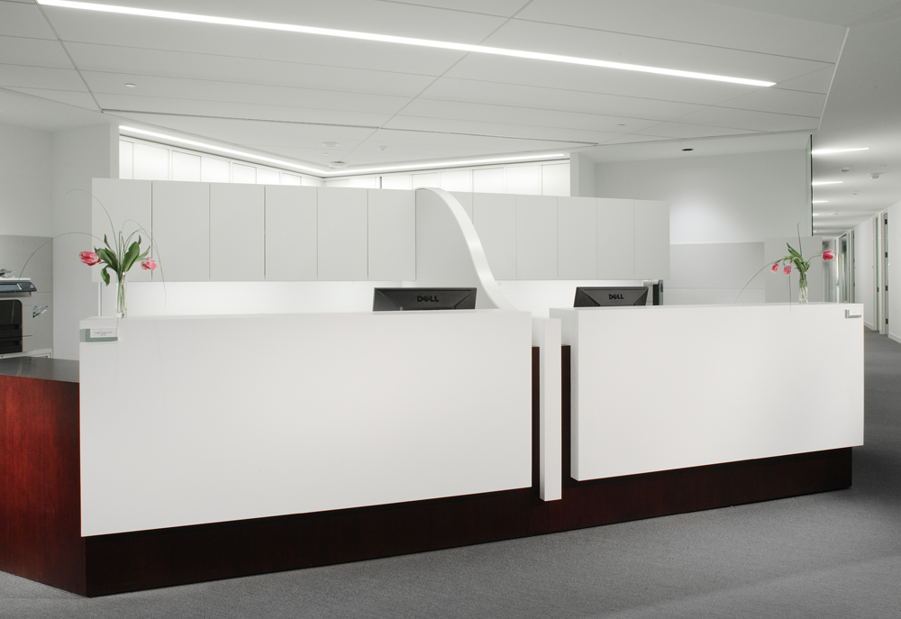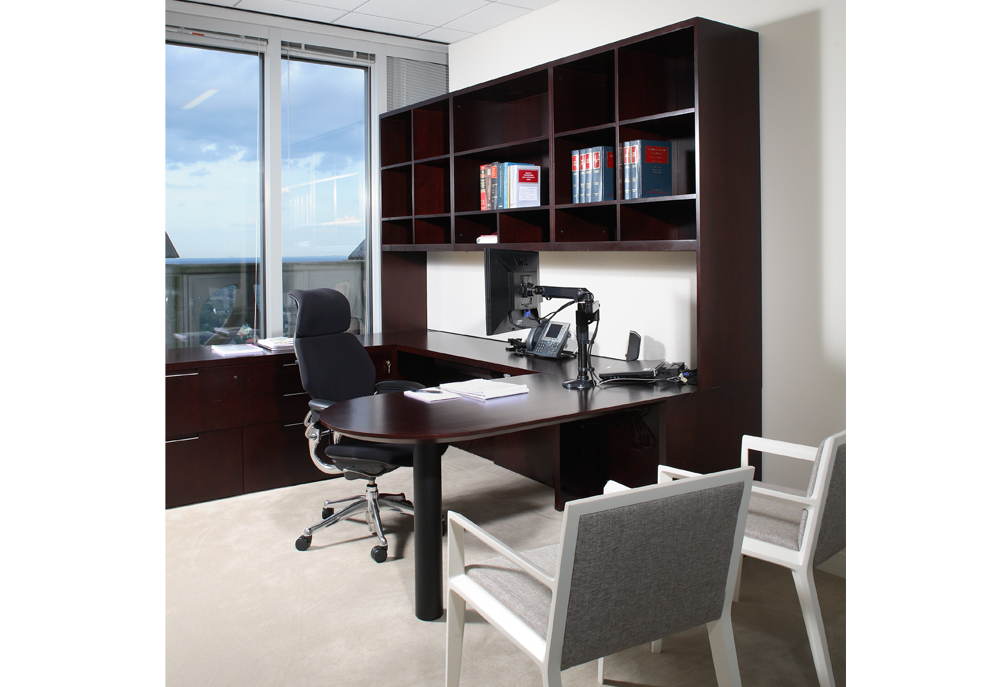 Specifically tailored for the prominent Atlanta law firm Alston & Bird, this project features precision crafted pieces ranging from side tables to work stations, conference tables, administrative stations, and reception desks. Each piece of furniture was designed, detailed, and constructed specifically for this high end office. Existing marble table tops were re-purposed with new bases, aprons, and technology drawers