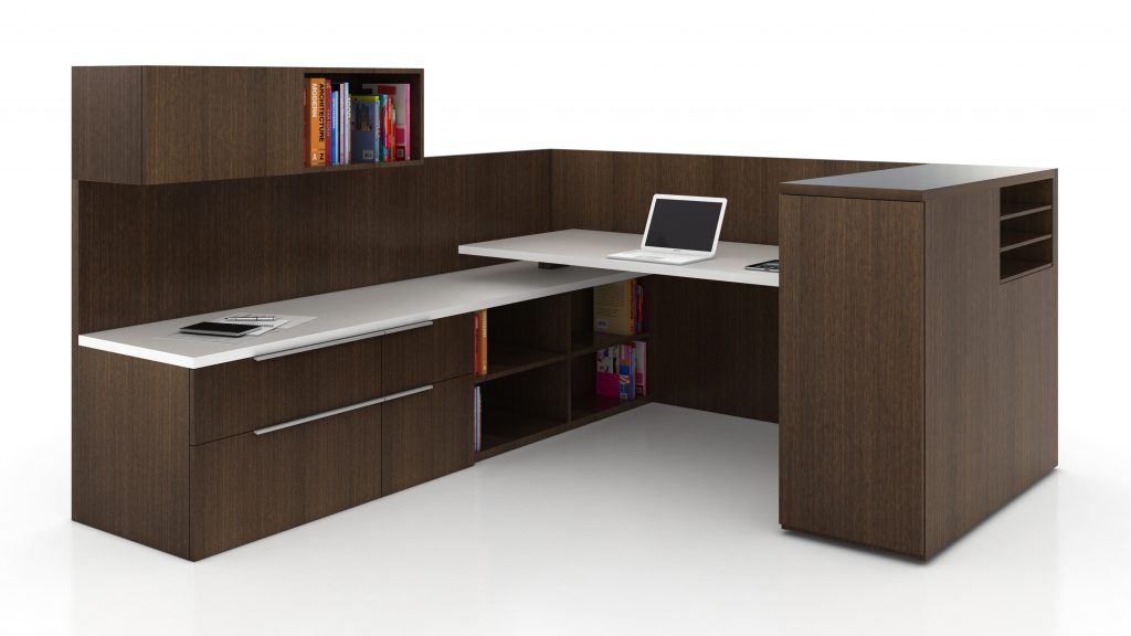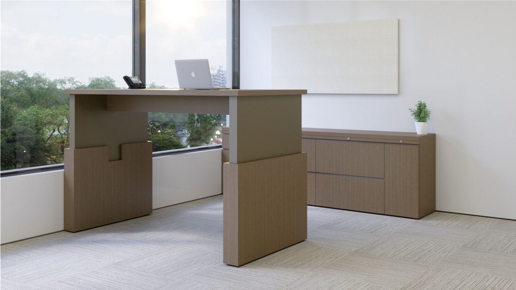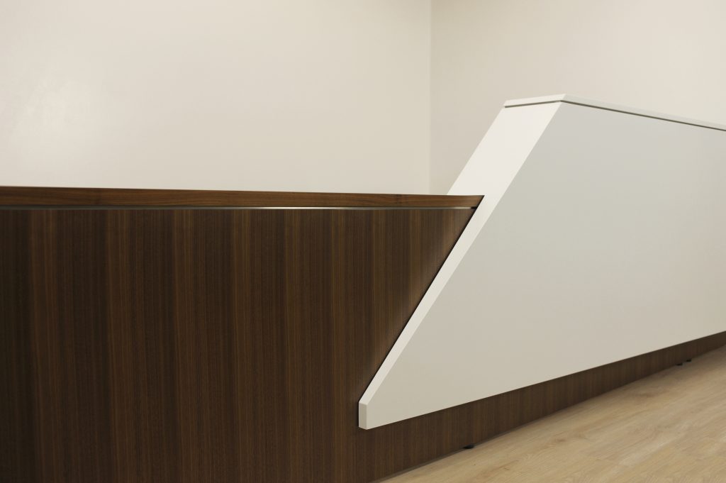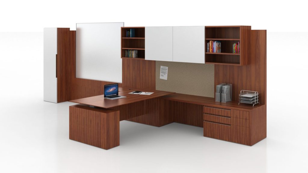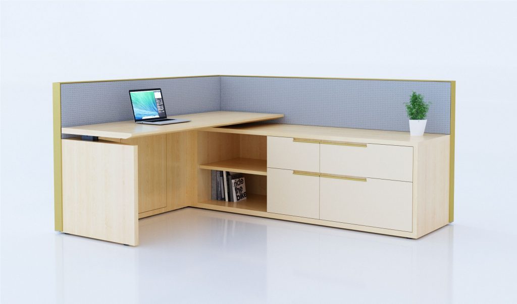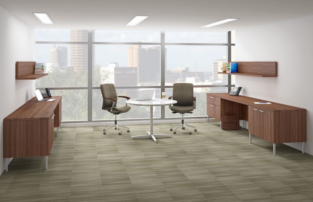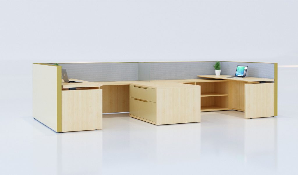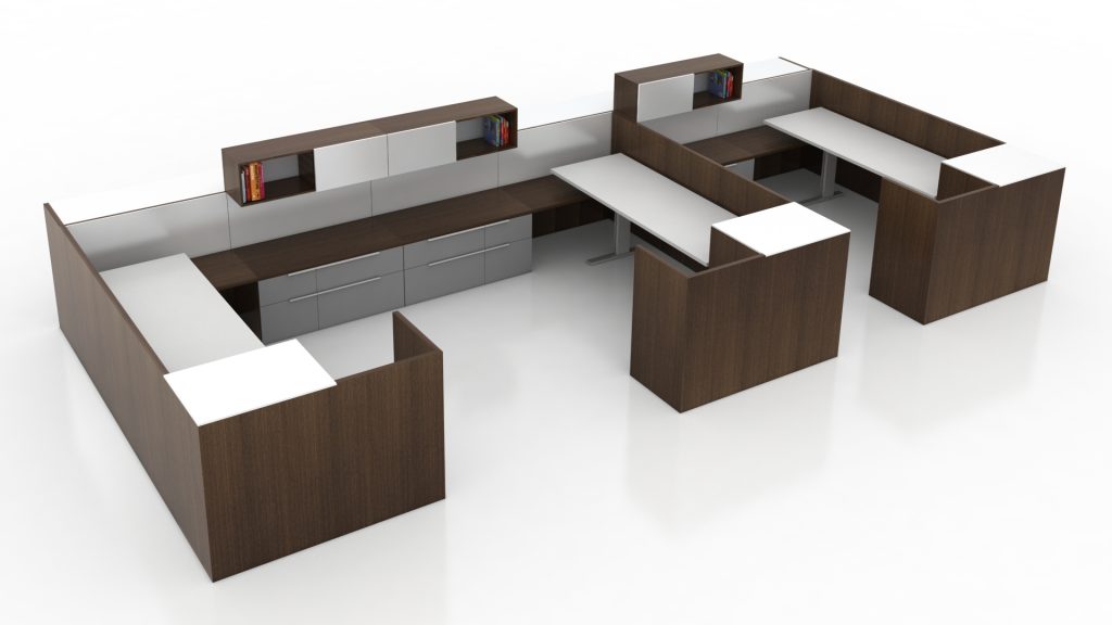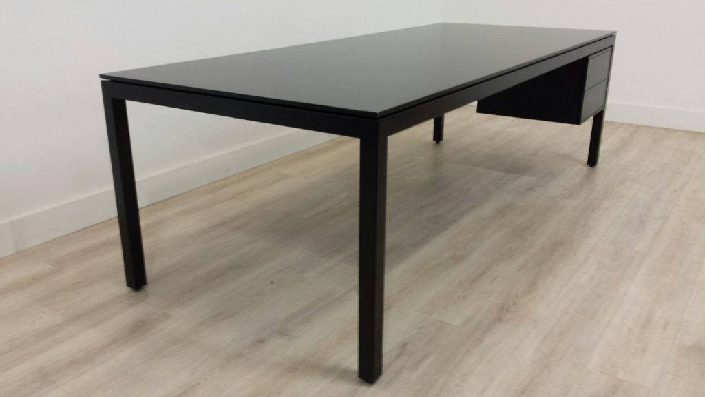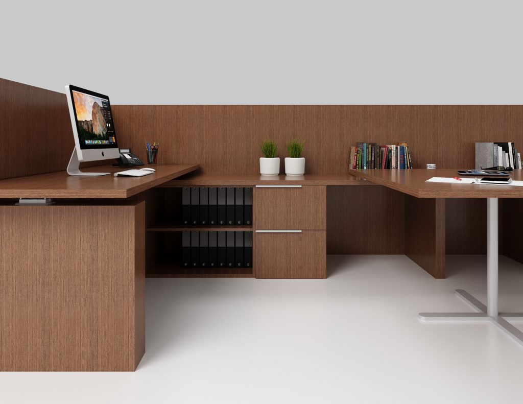 AERO sit-to-stand desk & conference table, bespoke backwall treatment