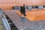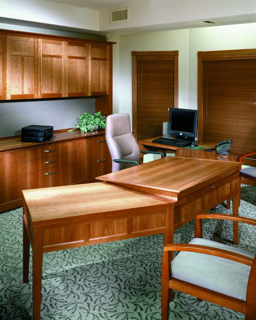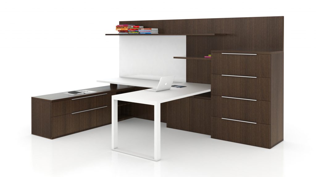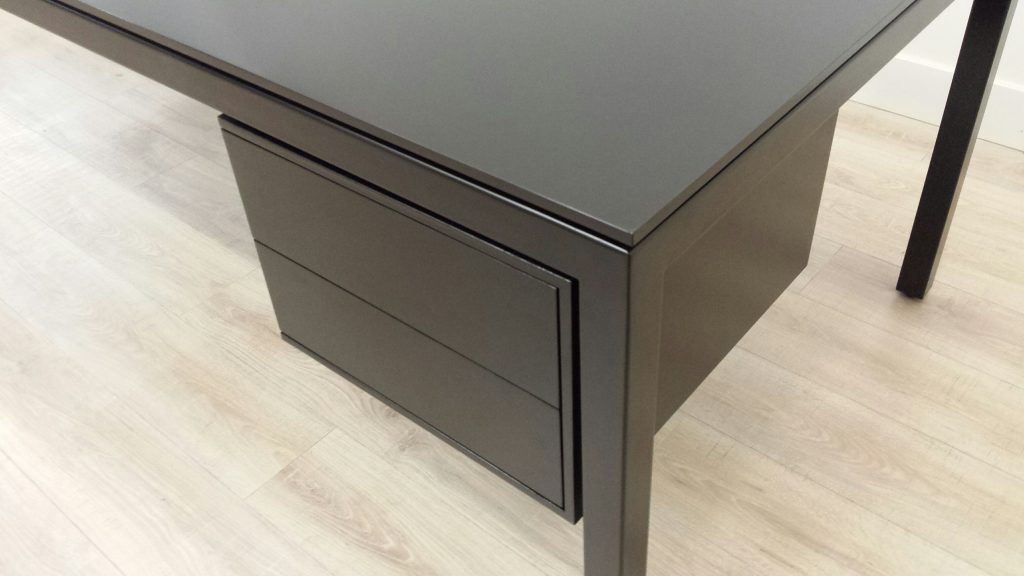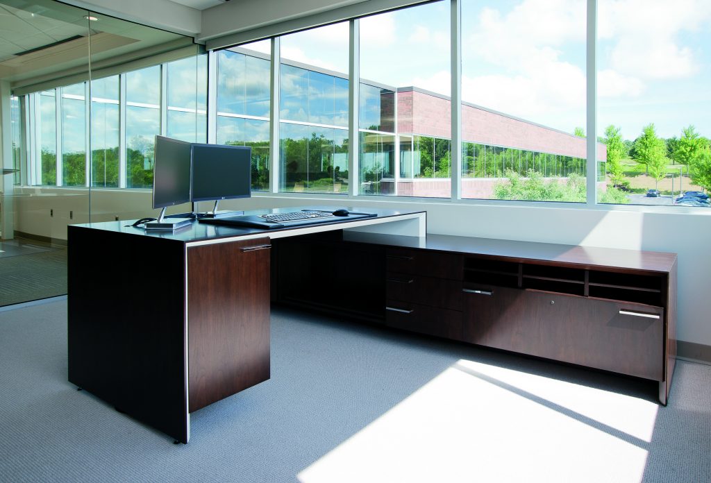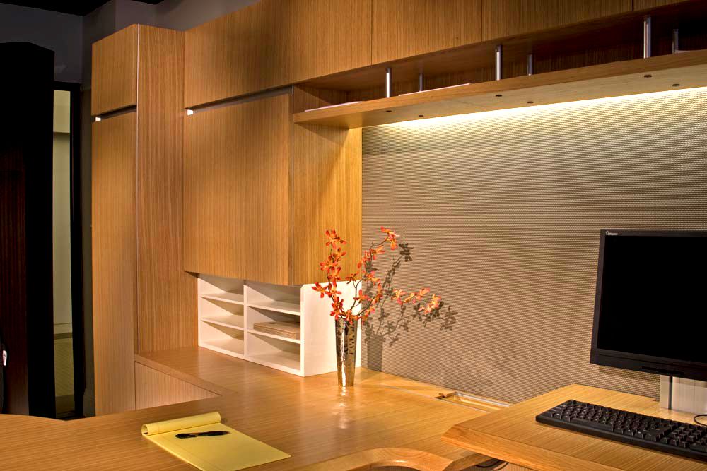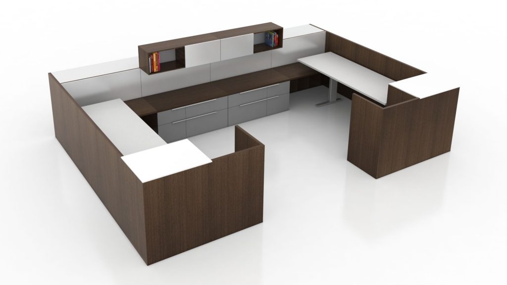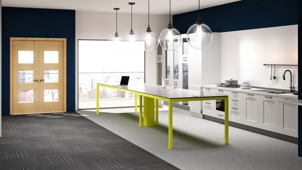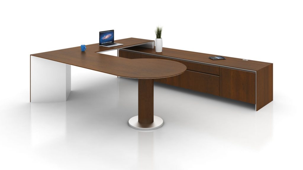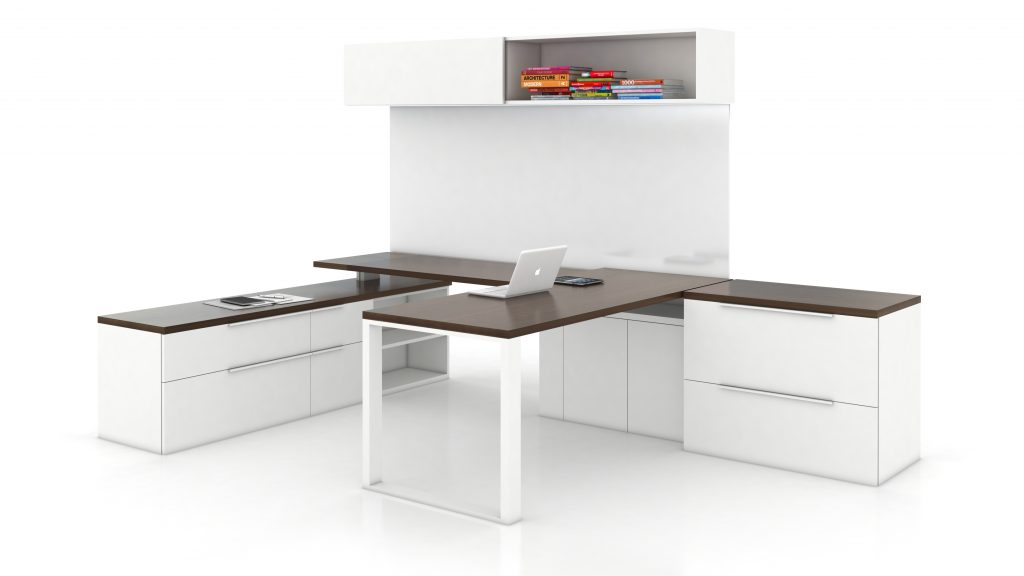AERO sit-to-stand desk & conference table, bespoke backwall treatment