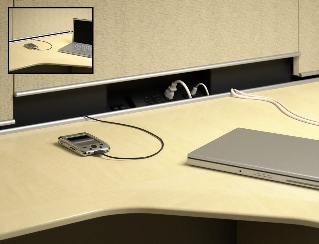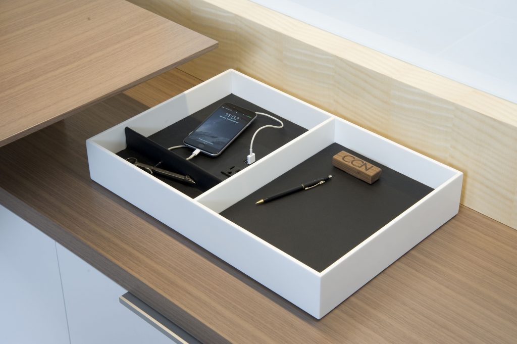 exclusive CCN Multitray - USB and power connect in tray that slides laterally to reveal waste receptacle