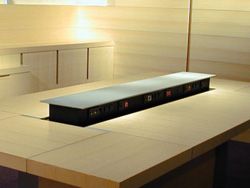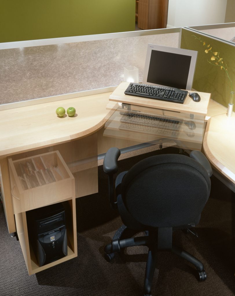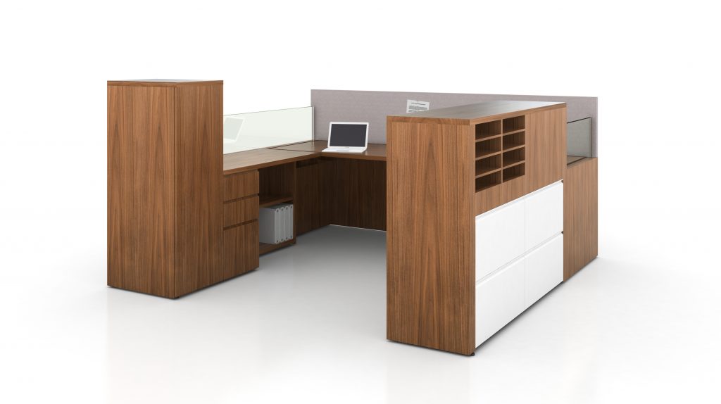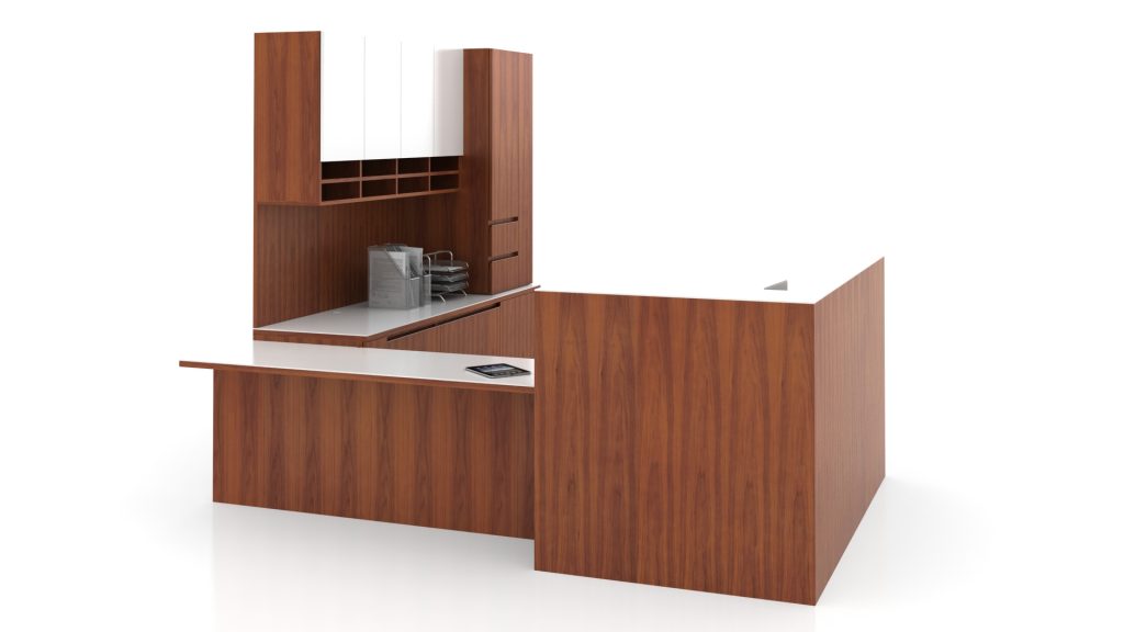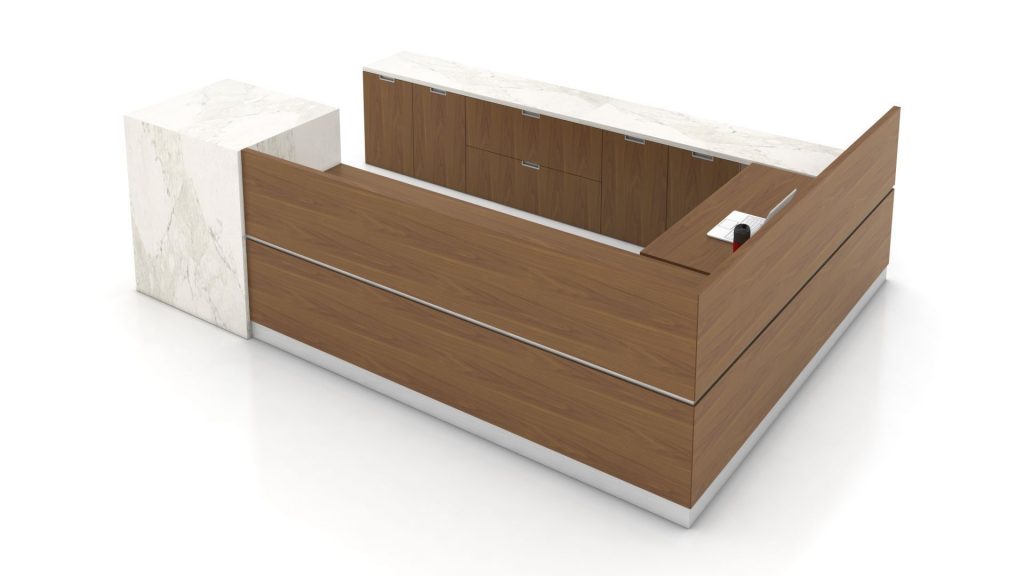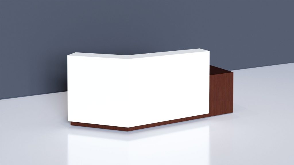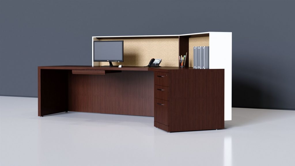 podium w/ built-in microphone, slide out tray, and equipment venting