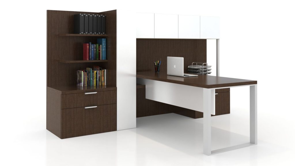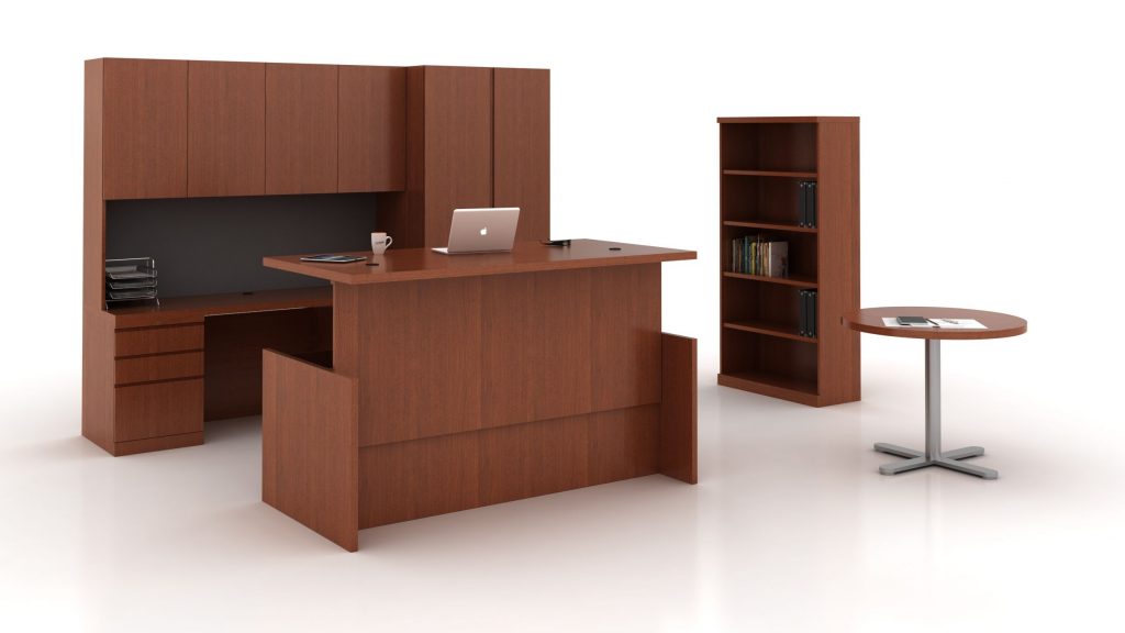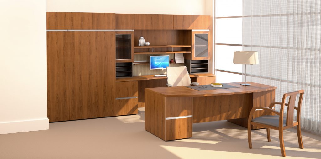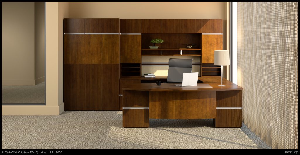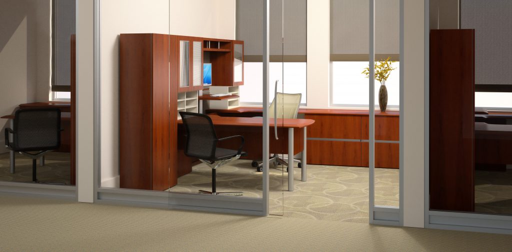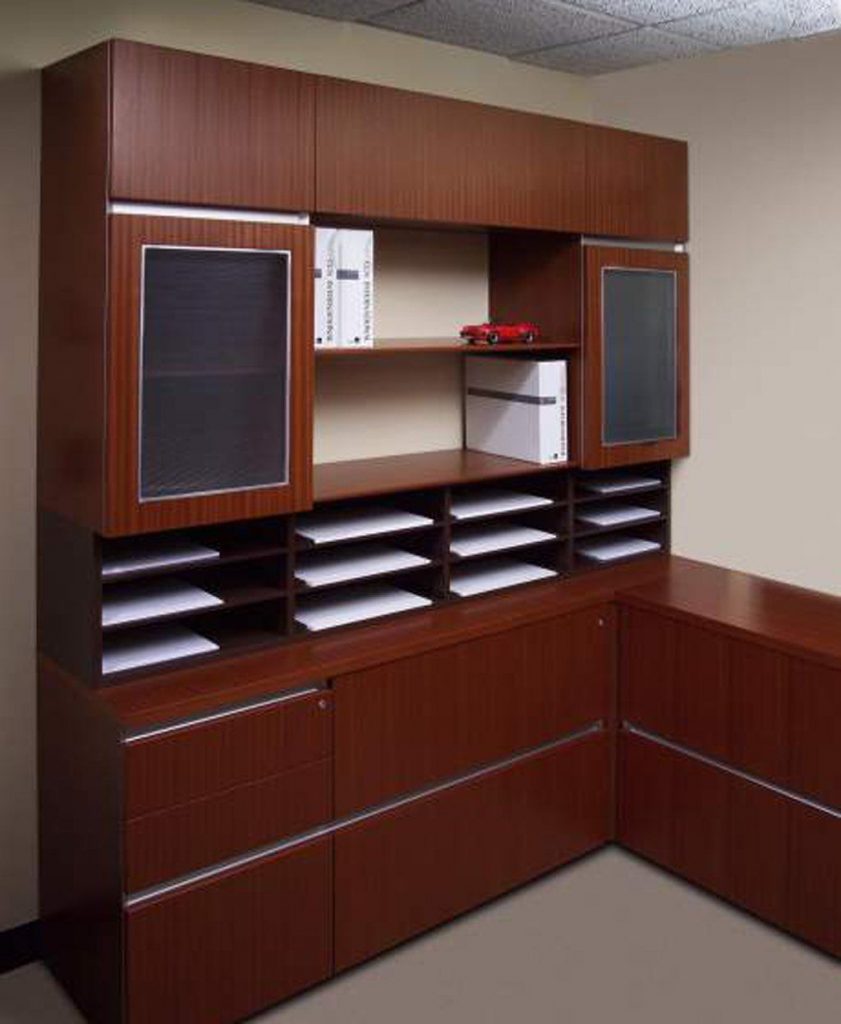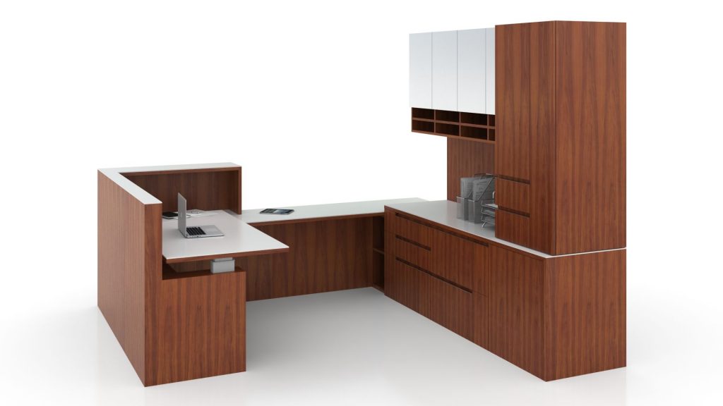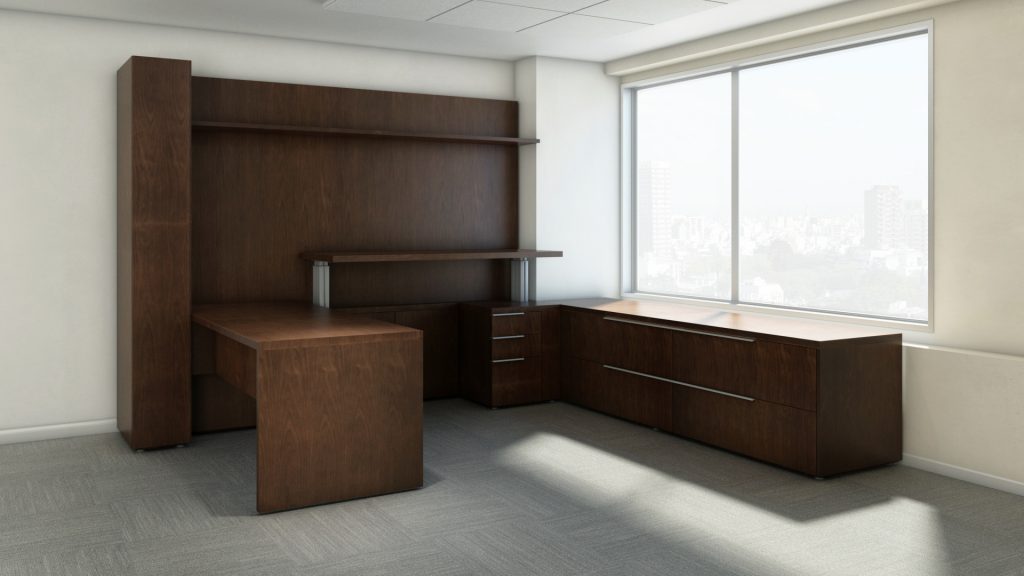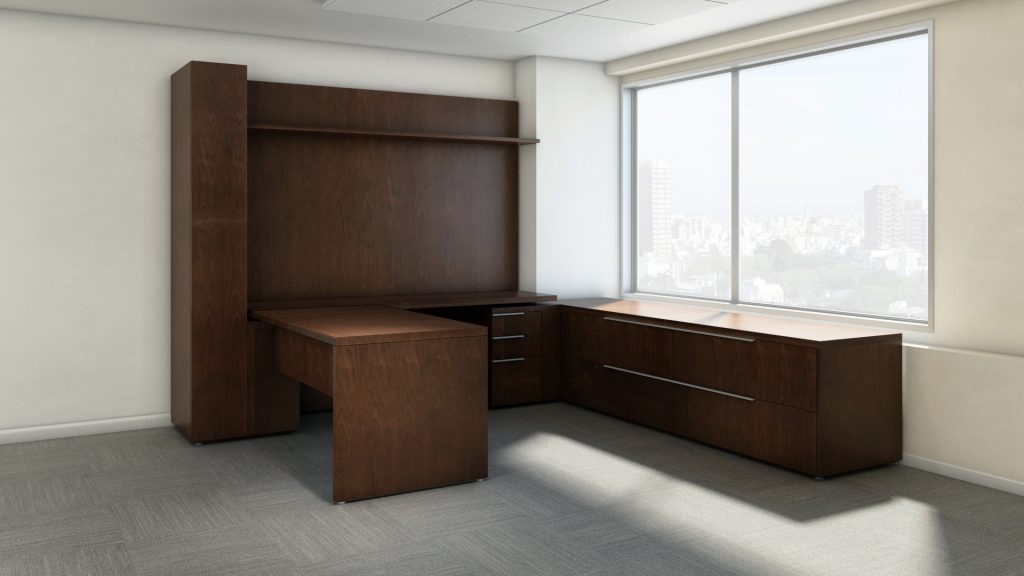 AERO conference credenza w/ waste-recycling bay, AV rack bay, refridgerator bay, and general storage bay